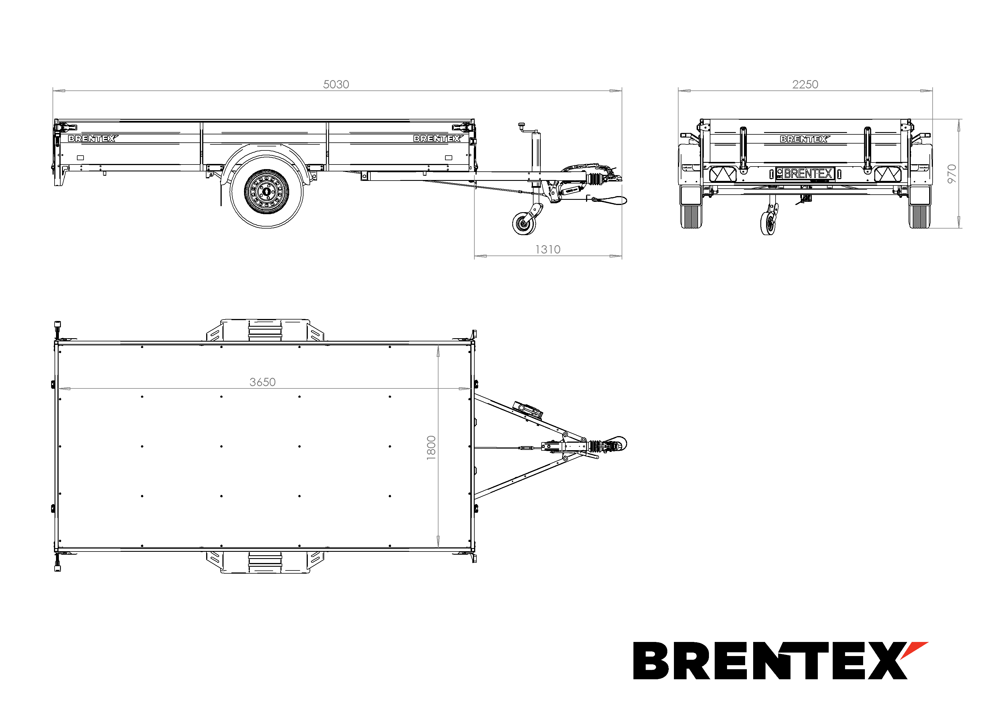 Piekabe ar bremzēm BREN-3618-1P-1400 uz pilnībā cinkota, metināta rāmja ar bremzēm ir izgatavota no izturīga S355 konstrukciju tērauda.