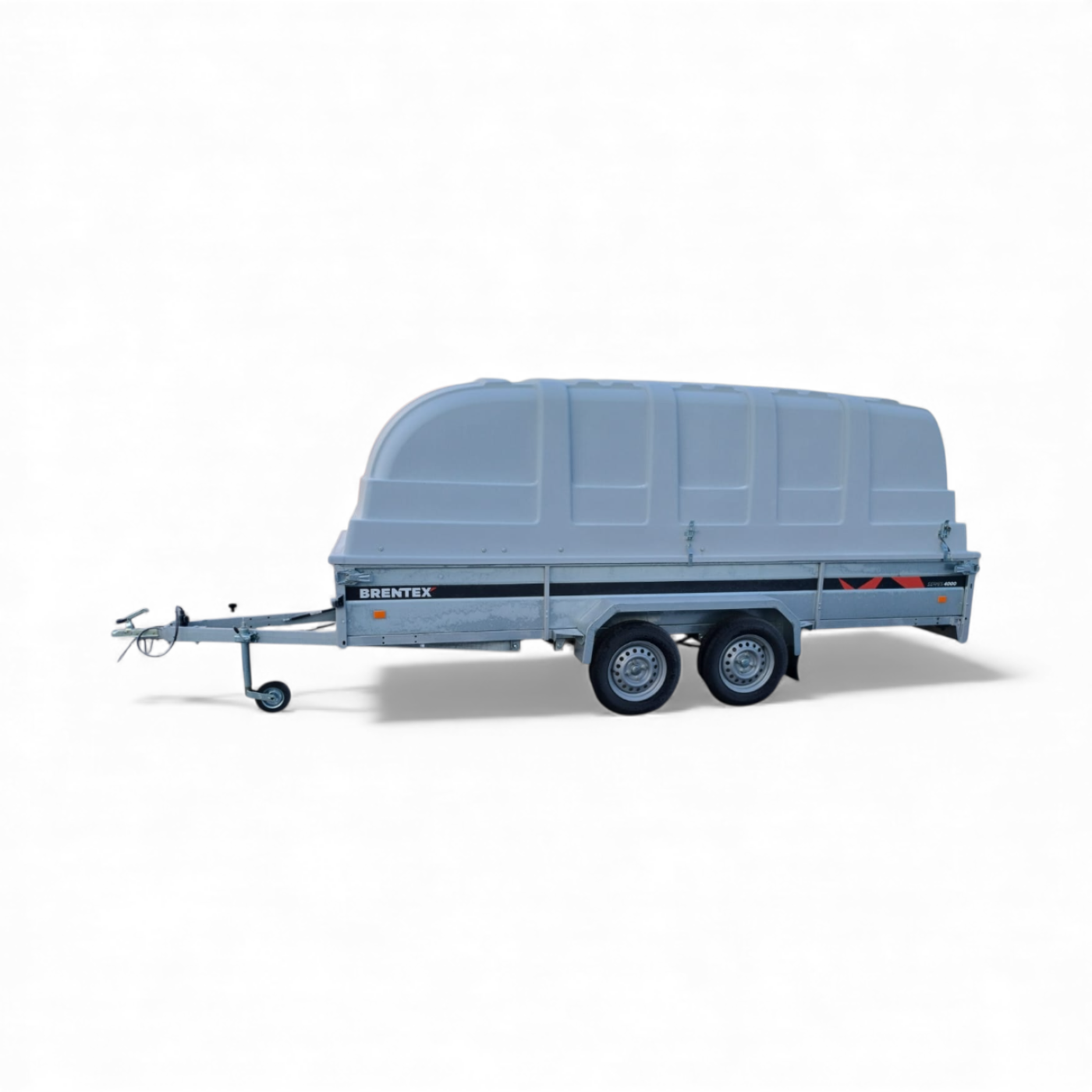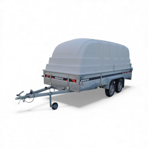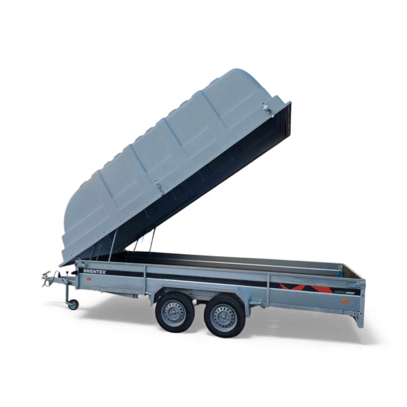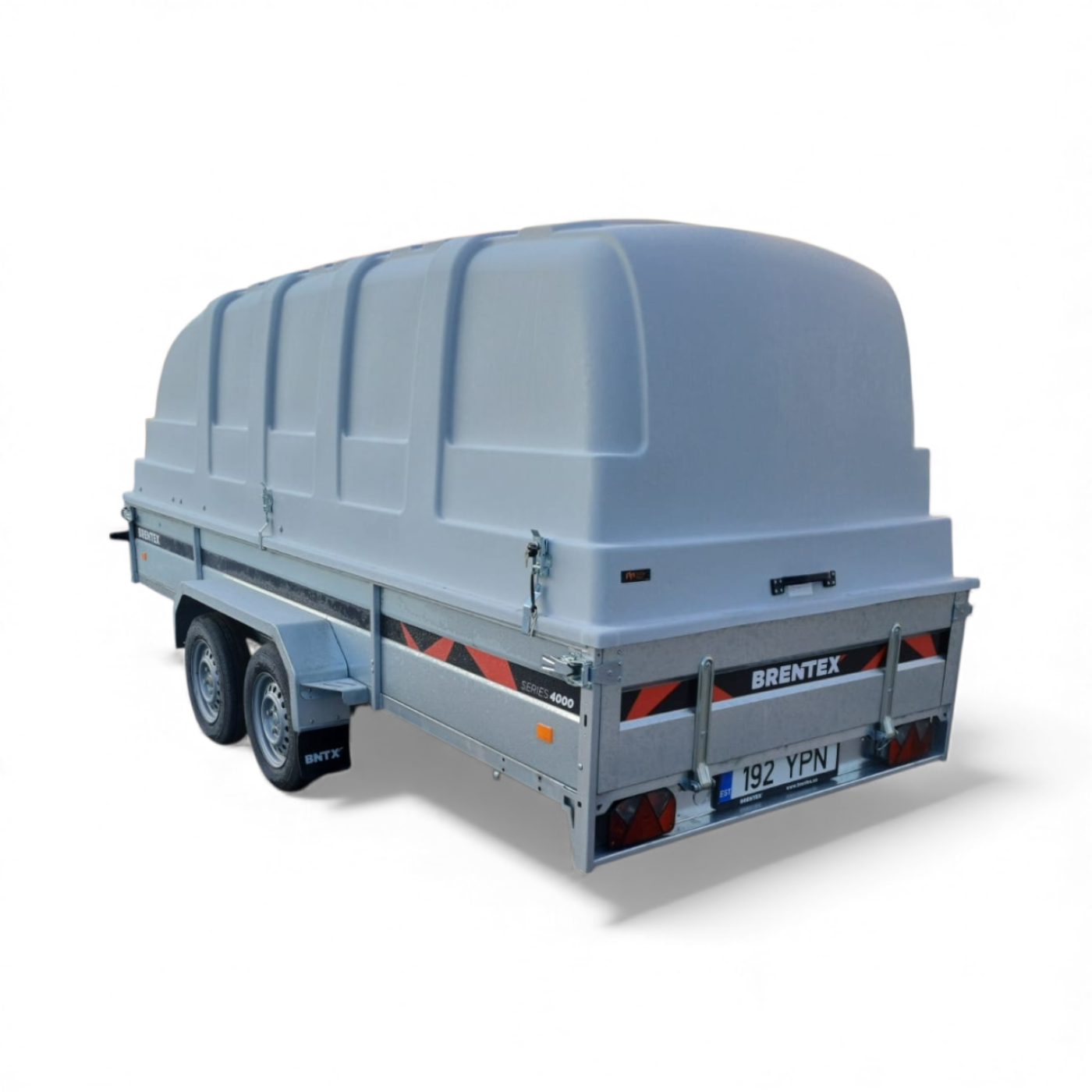 Vieglā piekabe BREN-4015-2N ar pelēku plastmasas vāku, bortiem un karsti cinkotu viengabala pilnībā metinātu rāmi ir izgatavota no izturīga konstrukciju tērauda S355.